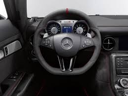 The SLS AMG Black Series uses double wishbones all-round in aluminum for increased track performance. Other features to aid driving include coil-over spring retainers, AMG RIDE CONTROL performance suspension with tauter basic tuning, sport and sport + modes, Elastokinematics that are 50/42% more rigid, track width that is increased to 20/24 mm, new wheel carries on the front axle as well as new front stabilizer tuning, Michelin Pilot Sport Cup 2 tires, and AMG speed-sensitive that is said to have newly defined power steering characteristics.